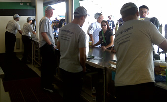 Staffing the stand! SportsHopes volunteers serve snacks and beverages to football fans at the 11-18-12 and 11-4-12 Oakland Raiders games to raise funds for SportsHopes. SportsHopes is a 501c3 nonprofit public charitable org that helps high school and community college student-athletes move forward to four-year colleges. Services provided to student-athletes are free of charge. The Raiders concessions company donates a percent of profits in return for staffing a stand.